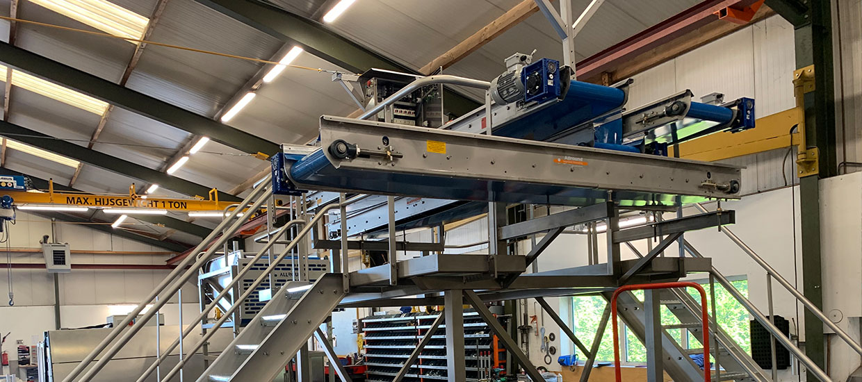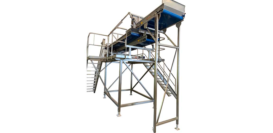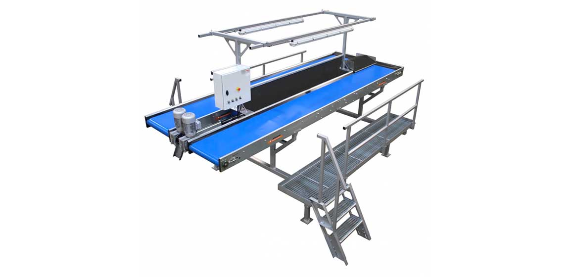 Allround VP皮带检查表用于手动排序产品之间的废物。它允许您挑选出腐烂的产品和其他废物,可以设置在两个带之间的废带上。这种中间带可以直接将其置于盒子中,或在另一个废物带上。