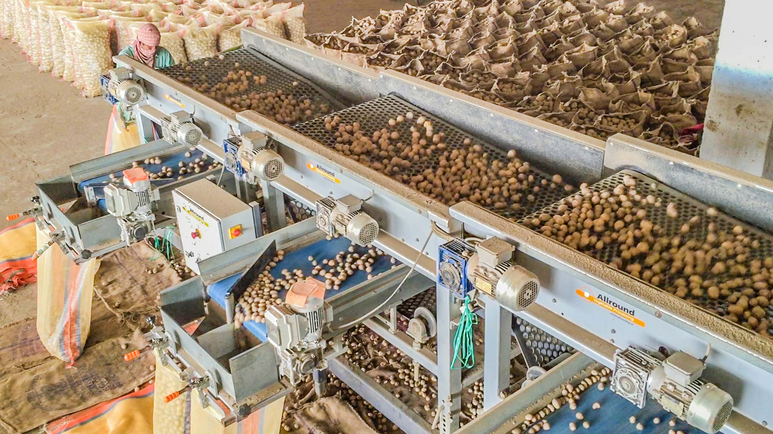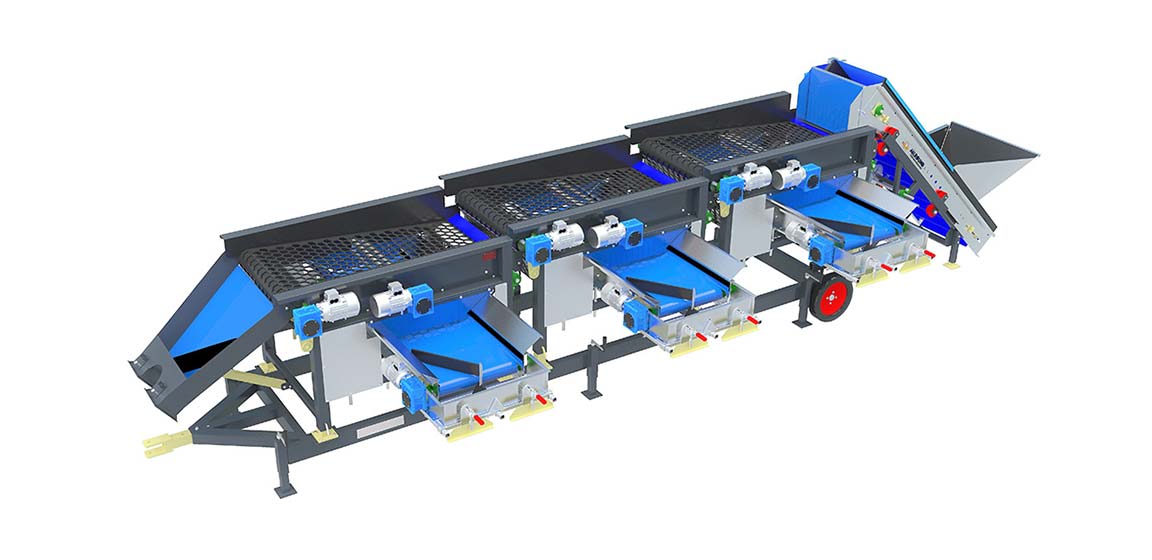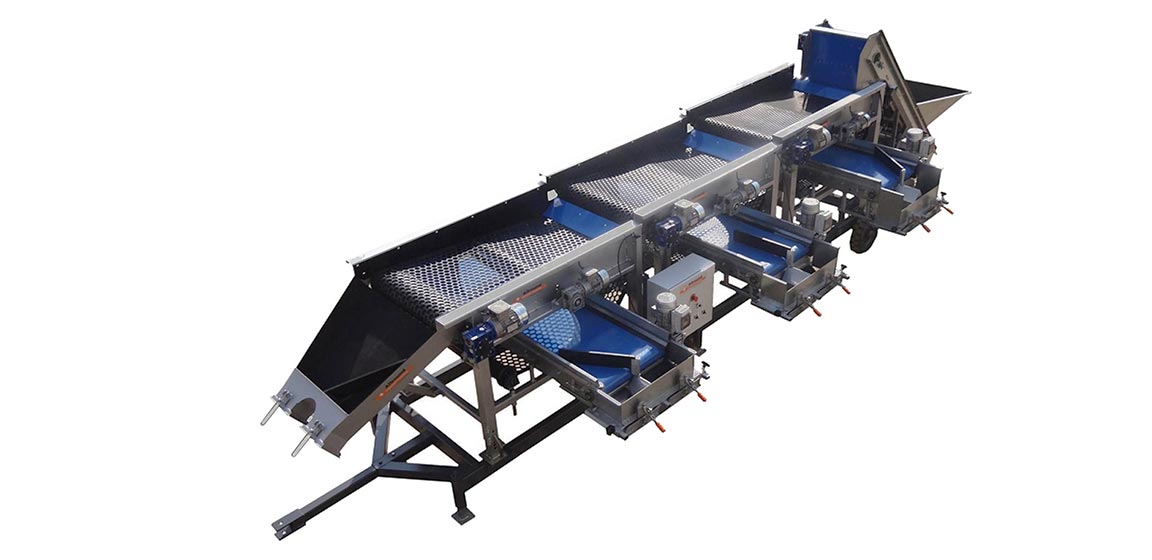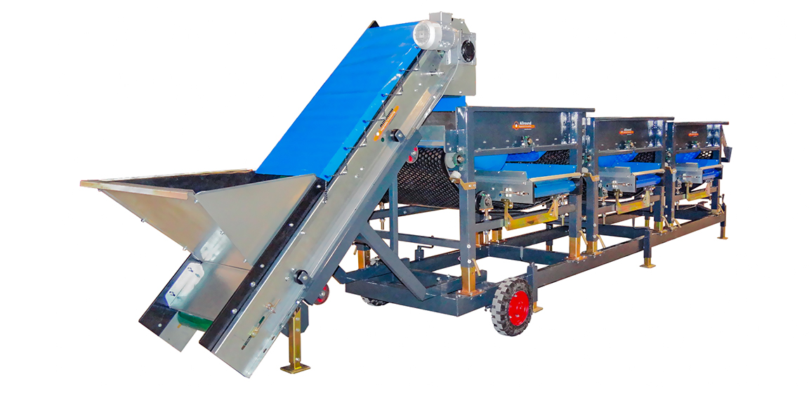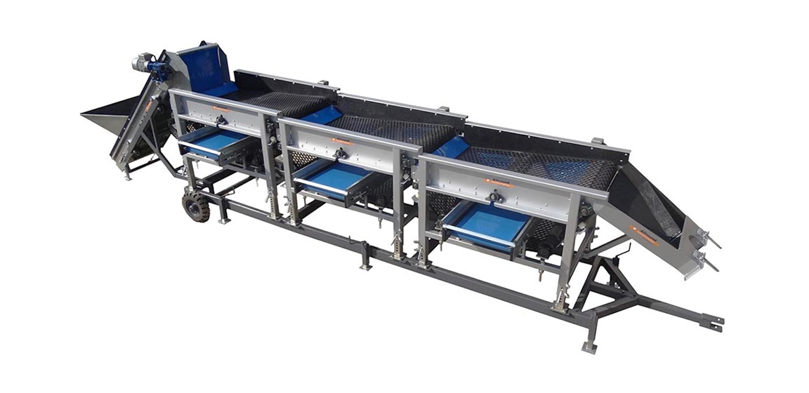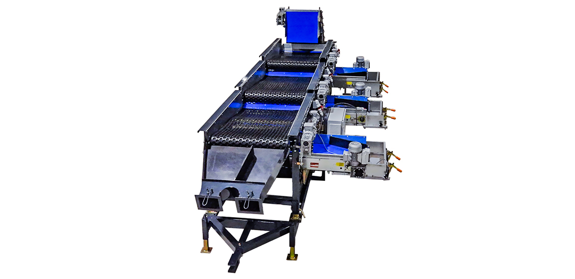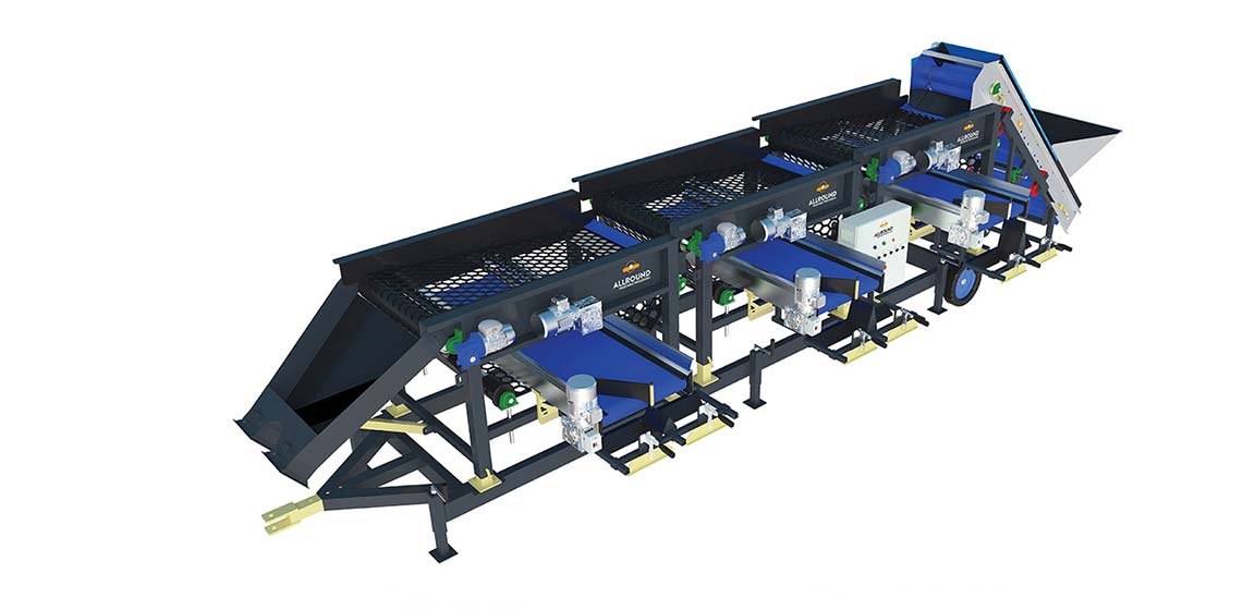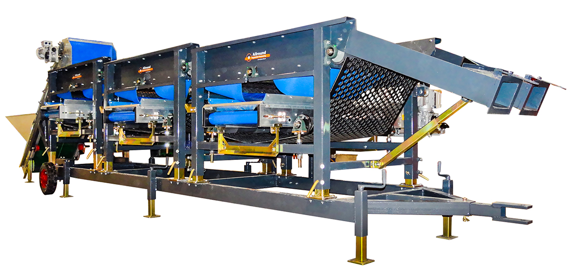 Allround屏幕Sizer设计为根据方形或六边形尺寸等级。机器具有带开口的振动旋转橡胶床。产品比开口小,它落在带上。