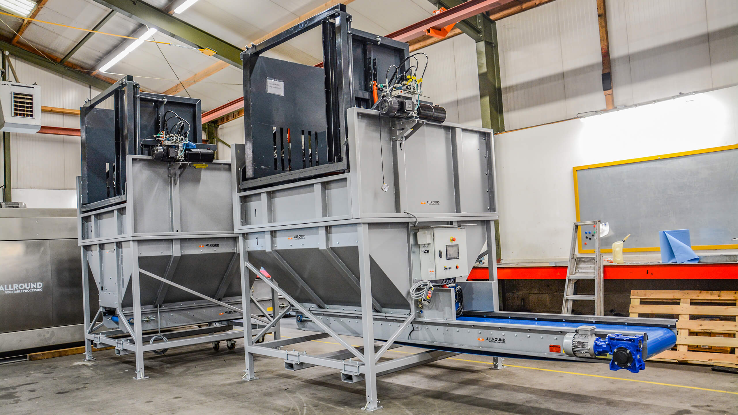 贮料斗- Boxtipper是一种专门为其产品提供计量称重和包装而设计的机器。贮料斗- Boxtipper可加工的产品主要用于马铃薯、洋葱和工业球。这是一个非常复杂的机器,实际上占用很小的空间,因为箱翻斗是附加在料斗的顶部。该机器的容量为+/- 3立方米,但显然可用的内容更大。料斗具有高度调整的可能性,这可以很容易地通过拆卸锁定销,并使一组腿在正确的位置。这也是boxtipper的选项,这台机器是专门为立方容器设计的最大尺寸:1200×1700。该boxtipper为您提供了一个机会,以1000毫米到1350剂量的盒子处理。